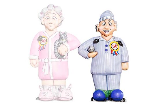 Als iemand 50 jaar wordt, dan heeft hij of zij als het goed is ruim 15 jaar geslapen! Is de jarige in kwestie – familielid, vriend/vriendin, sportmaat of collega van jouw klant – een dromer of een slaapkop? Met deze Abraham of Sarah op de inrit of in de tuin van de jarige is het in ieder geval duidelijk: hier is iemand die 50 jaar wordt of is geworden. Passanten moeten vast (minstens) even glimlachen als ze de megagrote (4 meter!) pop zien staan, feestvierders hebben in ieder geval gespreksstof tijdens het feest en de jarige zelf? Die kan er een nachtje over slapen wat zijn familielid, vriend, vriendin of collega nu precies bedoelt.