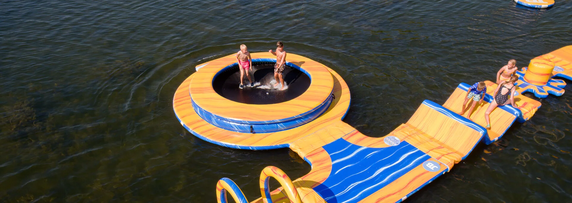 Met de modulaire JB Waterplay elementen kun je helemaal naar wens je eigen waterpark samenstellen. Zo bouw je een leuke attractie voor in het water waar jong en oud zich mee kan vermaken. Elke waterplay module kan afzonderlijk gebruikt worden, maar het is natuurlijk nog gaver om er verschillende te combineren tot een waterpark. Kies je voor een floatpanel, of toch liever voor een aqua trampoline? Of misschien heb je zelf wel een goed idee voor een speelelement voor in het water. Neem gerust contact met ons op om de mogelijkheden te bespreken.