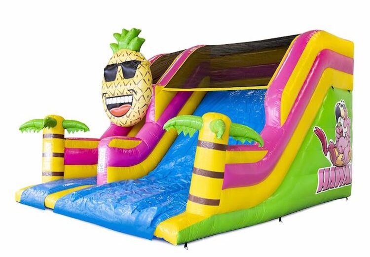 Opblaasbaar springkussen met glijbaan in hawaii thema kopen voor kinderen
