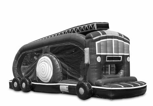 Koop een unieke 17 meter brede stormbaan in thema brandweer met 7 spelelementen en kleurrijke objecten voor kids. Bestel opblaasbare stormbanen nu online bij JB Inflatables Nederland