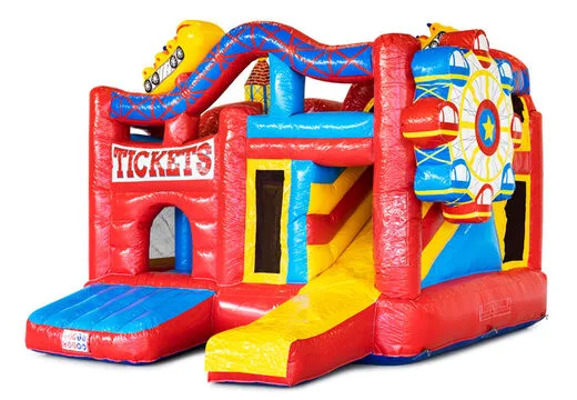 Slide combo opblaasbaar springkussen in rollercoaster thema rood te koop voor kinderen
