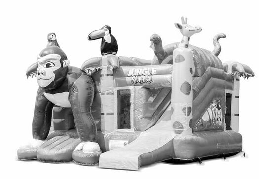 Opblaasbaar springkussen met glijbaan aan de voorkant volledig in Amazon Safari thema te koop voor kinderen