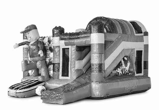 Opblaasbaar overdekt multiplay springkasteel met glijbaan kopen in thema superblocks lego voor kinderen. Bestel opblaasbare springkastelen online bij JB Inflatables Nederland
