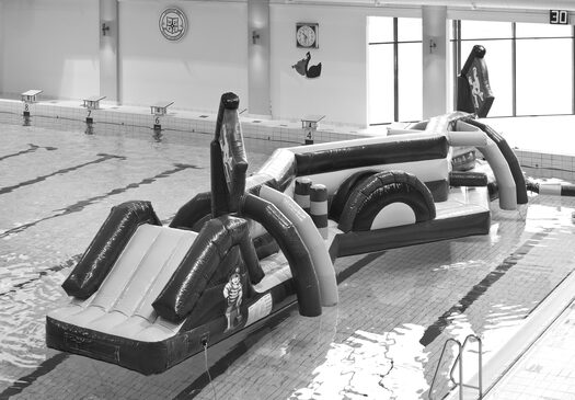 Spectaculair is deze dubbele zwembadstormbaan zeker! Het wedstrijdelement is groot, doordat je met zijn tweeën start en zo snel mogelijk het einde van de baan moet zien te bereiken. Maar natuurlijk zal niet iedereen de finish halen... en onderweg van de baan in het water vallen. Een hilarisch gezicht! Wie mag zich de kampioen van de Dubbele Zig Zag Piraat noemen?
