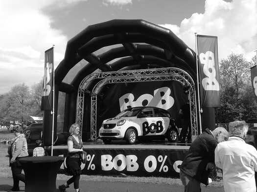Voor de BOB campagne van de rijksoverheid hebben we dit opblaasbare podium op maat gemaakt. Om het podium groots op te laten vallen hebben we de print gedrukt op de achterwand en op de bijpassende podiumrok. En met een mooi resultaat! Bekijk de specificaties voor meer informatie en wat je standaard van ons kunt verwachten.