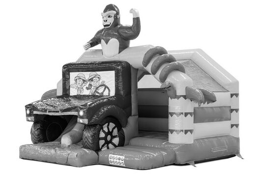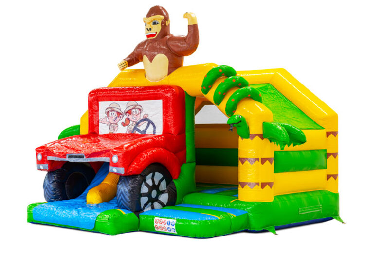 Een opvallende safari jeep en een mega gorilla zorgen ervoor dat dit een zeer aantrekkelijke attractie is bij het kinderpubliek! Met de unieke en zelfontworpen thema's van JB maak je van een buurtfeest, verjaardag of ander evenement een waar succes. Je zet het Slide Combo Doubleslide Gorilla springkussen gemakkelijk en snel op. Het kussen wordt geleverd inclusief blower, verankeringsmateriaal, een transportzak en een duidelijke handleiding. Alles compleet voor gemak en de ultieme beleving.