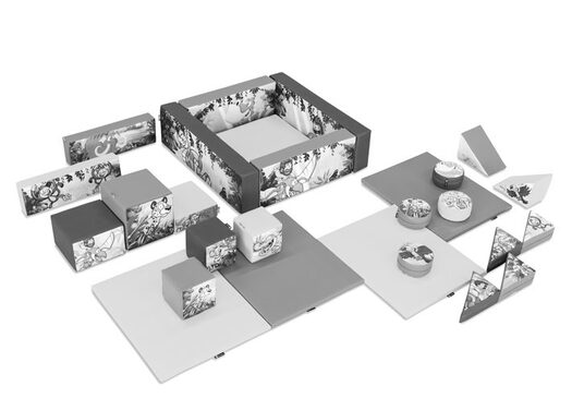 De 27-delige set bestaat uit meerdere softplay speelelementen in verschillende formaten; vierkanten, rechthoeken, blokken, driehoeken, stap-circels en foammatten. De samenstelling van de foamblokken en design van Softplay is door JB gedaan. Kwaliteit en gemak in onderhoud vinden wij belangrijk, zo gaan de Softplay attributen ook lang mee. Nog leuker, ze zijn er in allerlei thema's. Thema Jungle Dino bevat Softplay attributen met gave dino's en jungle details.