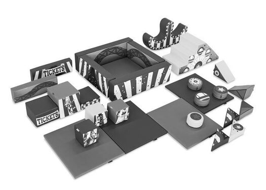 Deze 29-delige set bevat diverse softplay speelelementen in verschillende maten, waaronder vierkanten, rechthoeken, blokken, driehoeken, stap-circels en foammatten. Wij hechten waarde aan kwaliteit en eenvoudig onderhoud, zodat de Softplay materialen lang meegaan. Daarnaast vinden wij variatie in het assortiment belangrijk. De samenstelling en het design van onze Softplay set is daarom in-house ontworpen. Opvallend is de Rollercoaster thema zeker met de rode kleuren. Hierdoor roets je over de speelblokken alsof je in een echte achtbaan zit!