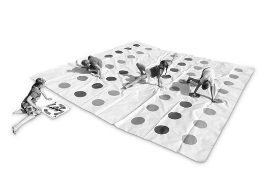 Een megagrote mat om Twister te spelen, geleverd samen met een speelbord. Een mooie aanvulling op jouw collectie met spellen voor een zeskamp. Wil je jouw klant een plezier doen met een spectaculair spel, dat coördinatievermogen, incasseringsvermogen en conditie vraagt? Dan is deze extra grote Twistermat een geheide hit. Omdat er liefst 4 speelhoeken zijn bij deze XXL-versie van het populaire Twister, kun je met een grote groep tegelijkertijd dit spel spelen. De mat waar het hele spel op staat, is in totaal 5 bij 5 meter groot. Er is dus wel wat ruimte voor nodig om deze Twister te spelen.